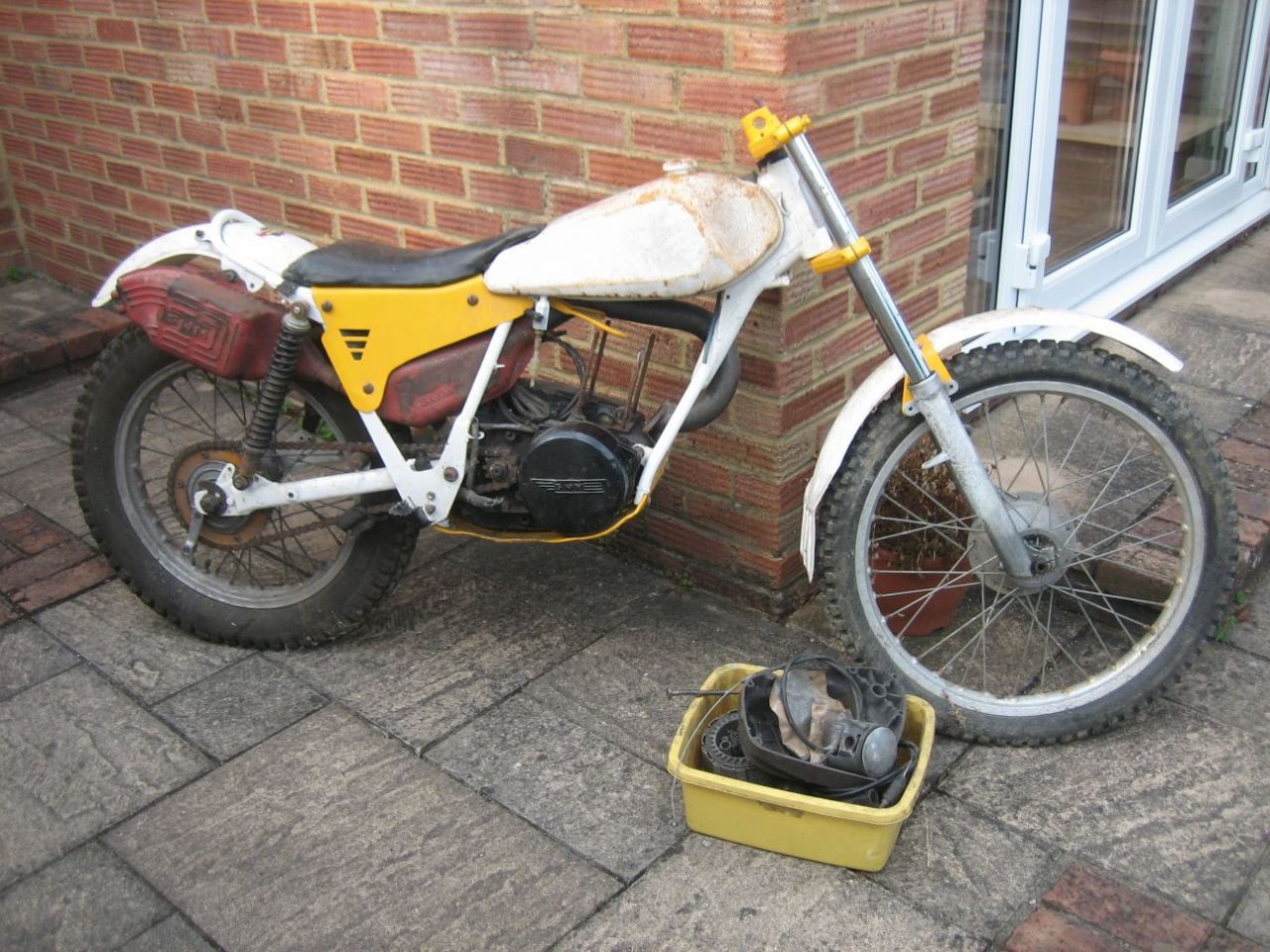 The bike as I bought it, no barrel, and the crankcase full of grime