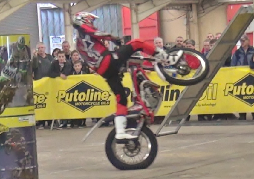 Gas Gas rider Steve Colley performing his stunt show at Stoneleigh park