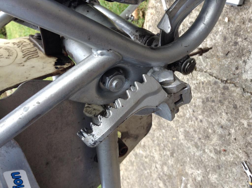 pro sport Posted August 19, 2014 Report Share Posted August 19, 2014 Hi John These are the footrests that I fitted , fair bit of grinding on the original lugs ot make them fit. Just need to sort return springs ! as you will see from the next photo 1 Quote Link to comment Share on other sites More sharing options...