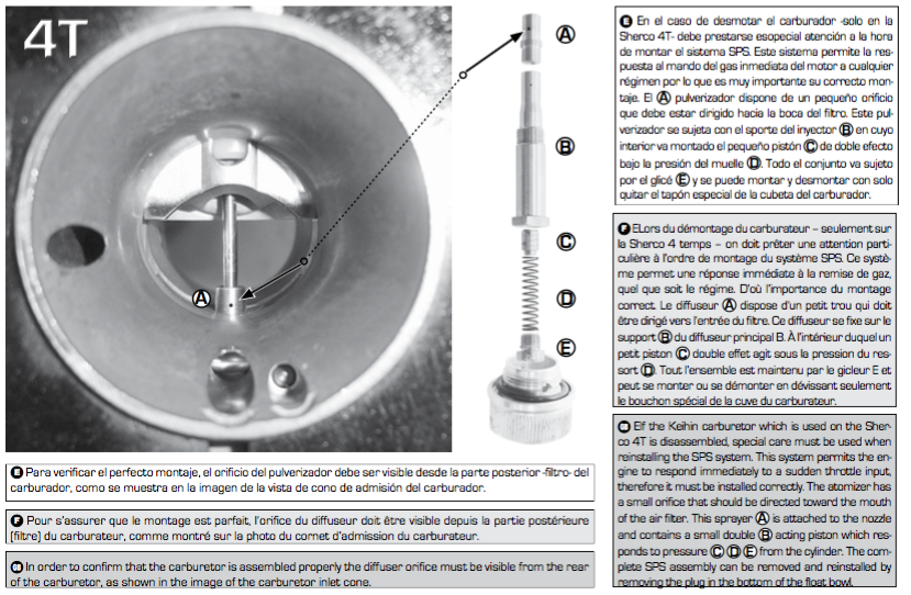 I have a RTL that I've tried to fit a PWK Keihin that has an awful flat spot at about 1/3 throttle and won't start. I've tried many different jets and combinations, but it doesn't get much better. This sounds similar to the early Sherco 4T and was solved by the SPS Keihin carburettor. I can find the parts on Splat shop, but noting about how the parts are fitted.