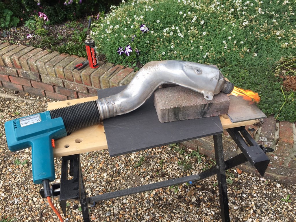 markparrish Posted June 25, 2019 Report Share Posted June 25, 2019 Just thought I'd share my photo of the day! I've been reading up on methods to clean out my pipe of my Rev3 (I noticed a bit of smoking recently, particularly when riding between sections on a big loop, when the engine was running hot and for a few minutes). I am not losing any gearbox oil and have recently changed mains/seals, so suspected it was the exhaust. I guessed it was a build up of unburnt oil and crap and on examination I think it was the cause (I ride it a bit gently and probably never give it a good enough blast). There was also a fair amount of carbon too. I decided to try the burning method; I started things off with a small blow-lamp and also aimed the hot air gun down the pipe. It soon got glowing inside and then the oil ignited. Once it was going I left the hot air gun running. It took a few minutes before the flames went out. After allowing it to cool I tapped out some ash and the insides looked pretty clean. The aluminium mid section wasn't harmed in any way, but I did dull the chrome and introduce some nice blues/golds to the header pipe!, which is now carbon free. I cleaned and repacked the silencer in the usual way (no burning!). I have yet to ride it properly but it seems to run cleanly, pulling well from idle, and sounds a bit less noisy. I'll report back after the weekend. Cheers. 1 Quote Link to comment Share on other sites More sharing options...